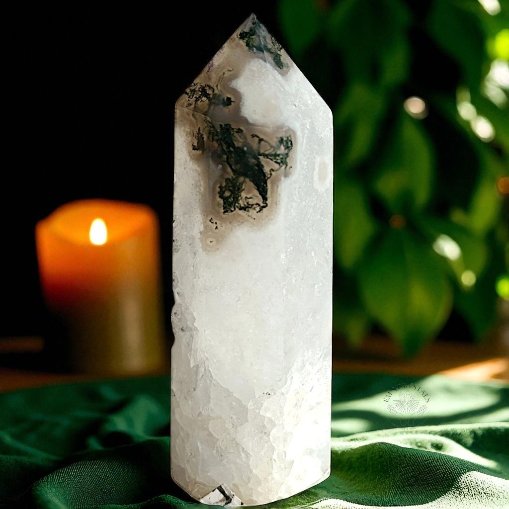 Mechový achát na rozdíl od svého názvu není ve skutečnosti achátem, spíše je to chalcedon s dendritickými inkluzemi manganu, chromu a/nebo železa. Nečistoty uvnitř připomínají mech a další různé vzory, což vede k přesvědčení, že uvnitř je uzavřena pravá organická hmota. Syté barvy a zářivé vzory jsou jednoduše způsobeny různými úrovněmi oxidace krystalů uvnitř. Tyto barvy jsou nejčastěji zelené nebo hnědé, ale lze je vidět i ve žluté, červené a černé.