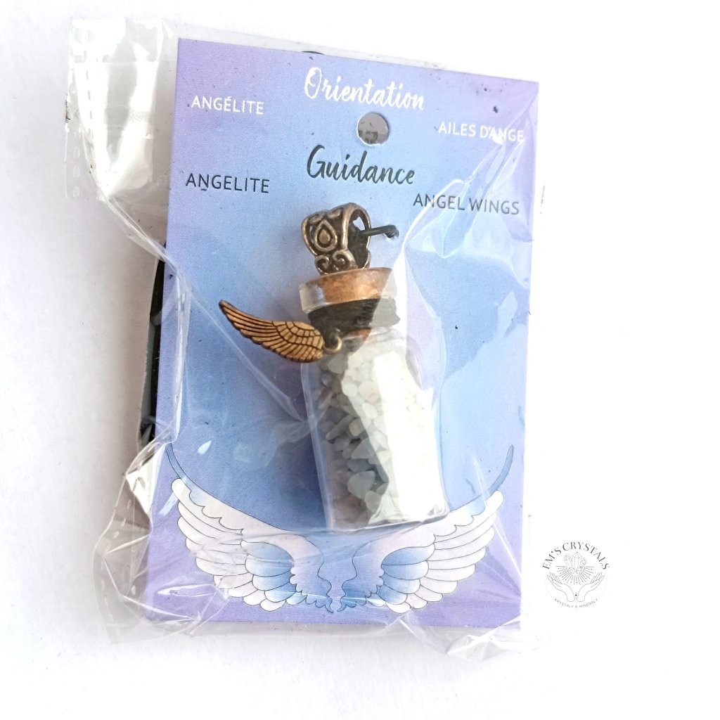 Angelit (také známý jako modrý anhydrit), který se vyskytuje v Peru, je bezvodný minerál síranu vápenatého, který se může spojovat s kalcity a hality. Tento kámen krystalizuje převážně ve formě hmot a zřídka se vyskytuje v krystalické formě. Tvrdost Angelitu je pouze 4, proto je poměrně křehký.