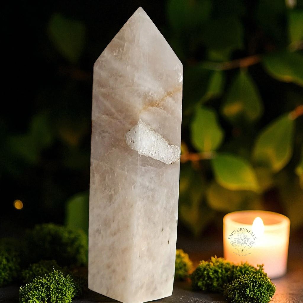 je kamenem nových počátků. Jak napovídá jeho jméno, je silně spjat s Měsícem a s intuicí. Nejsilněji tento kámen působí na utišení rozbouřených citů. Měsíční kámen vytahuje na povrch věci uzavřené dosud v podvědomí. Zvyšuje intuici a empatii. Vyvolává srozumitelné živé sny, zejména v době úplňku. Měsíční kámen přináší hluboké citové zotavení. Měsíční kámen podporuje rozvoj duše, také je symbolem plodnosti, intuice, jemnosti a mírnosti. Ženy i muže zjemňuje, zmírňuje jejich hrubost a necitelnost. Měsíční kámen je především ženský kámen. Provází je v meditativních cestách do jejich nitra.