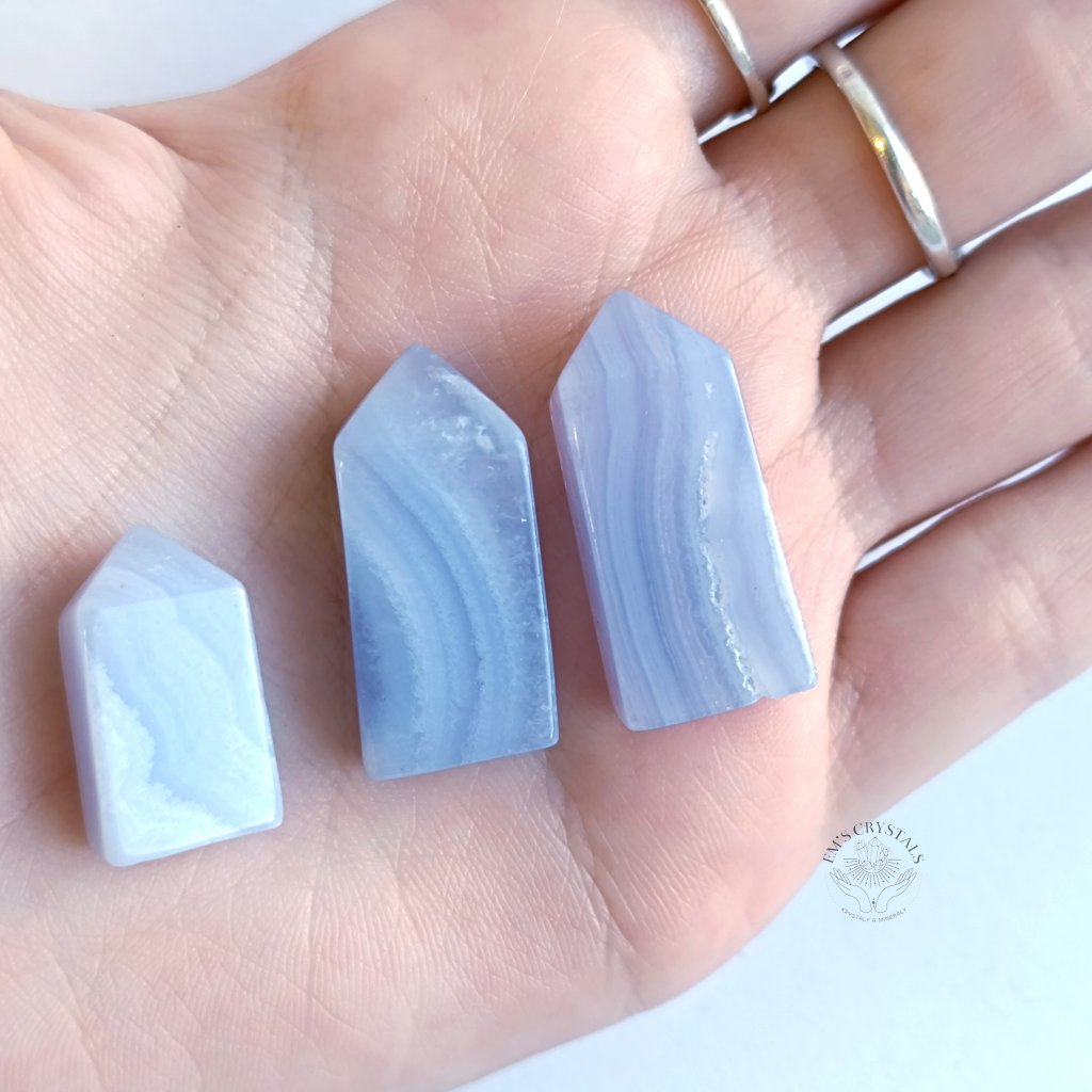 Chalcedon (správně Modrý krajkový Achát) je mikrokristalizující silikátový minerál a člen rodiny křemenů. Barva se může pohybovat od světle průhledné modré až po nebesky modrou. Známý modrý chalcedon je dle mineralogického hlediska prakticky achát. V angličtině tento kámen dokonce nese jméno Blue Lace Agate. Rozdíl mezi Achátem a Chalcedonem jsou právě tyto známé "proužky". Achát proužky má, Chalcedon nikoliv. Pojmenování "Chalcedon" pro tento kámen je tedy spíše obchodní název používaný převážně v Česku, Slovensku a Německu.