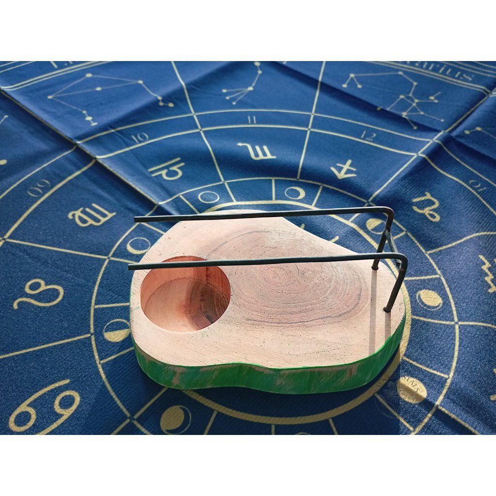 Pozvedněte svůj očistný rituál na novou úroveň s tímto unikátním stojanem. Základna je vyrobena z masivního dřeva stromu Gamal,(exotický strom z Indonésie) které si zachovává svůj přirozený tvar a nádhernou kresbu. Minimalistický kovový držák je navržen tak, aby bezpečně držel dřívko Palo Santo nebo svazek šalvěje nad plamenem čajové svíčky. Tento stojan není jen praktickou pomůckou, ale uměleckým kouskem, který do vašeho domova vnese klid a hřejivou energii přírody.
