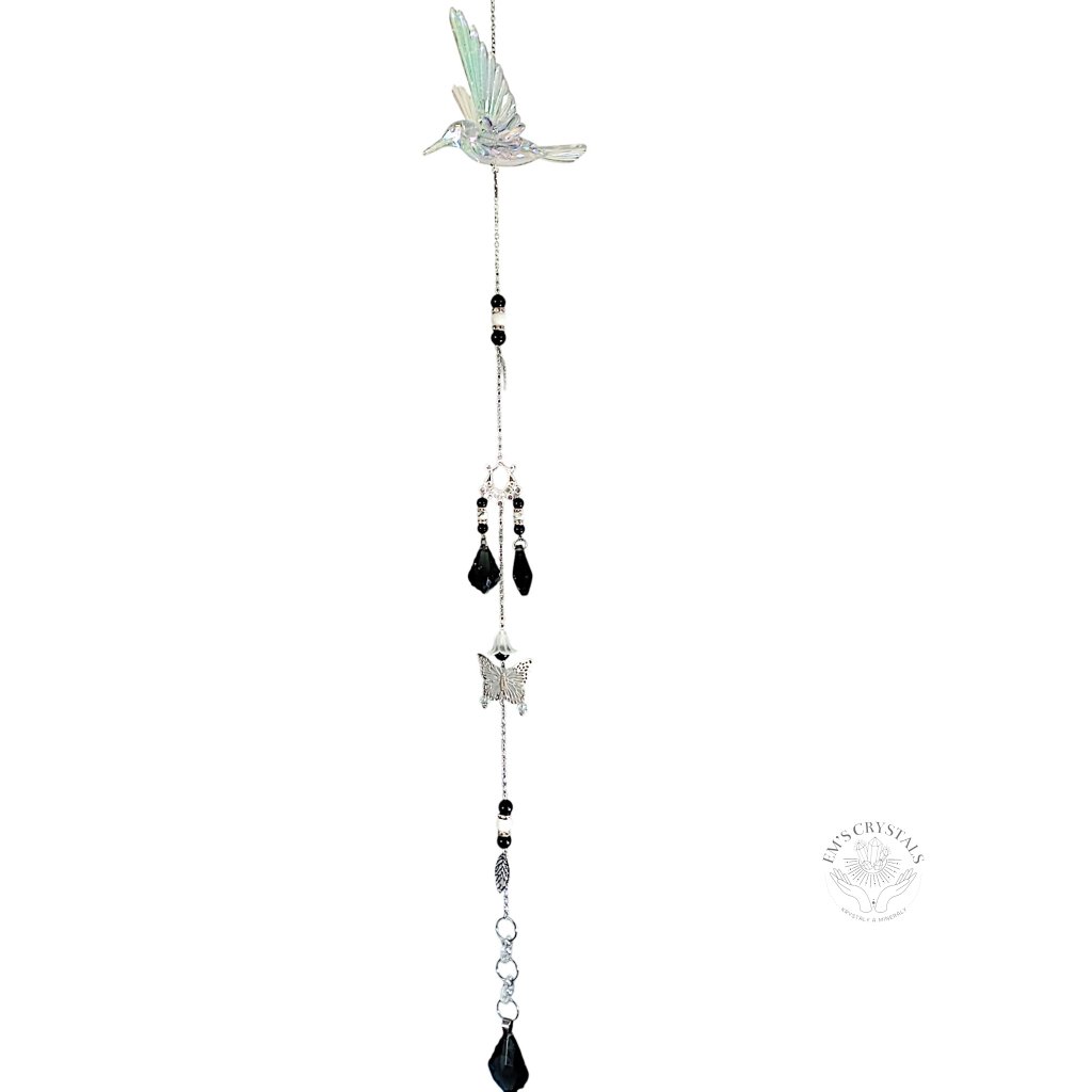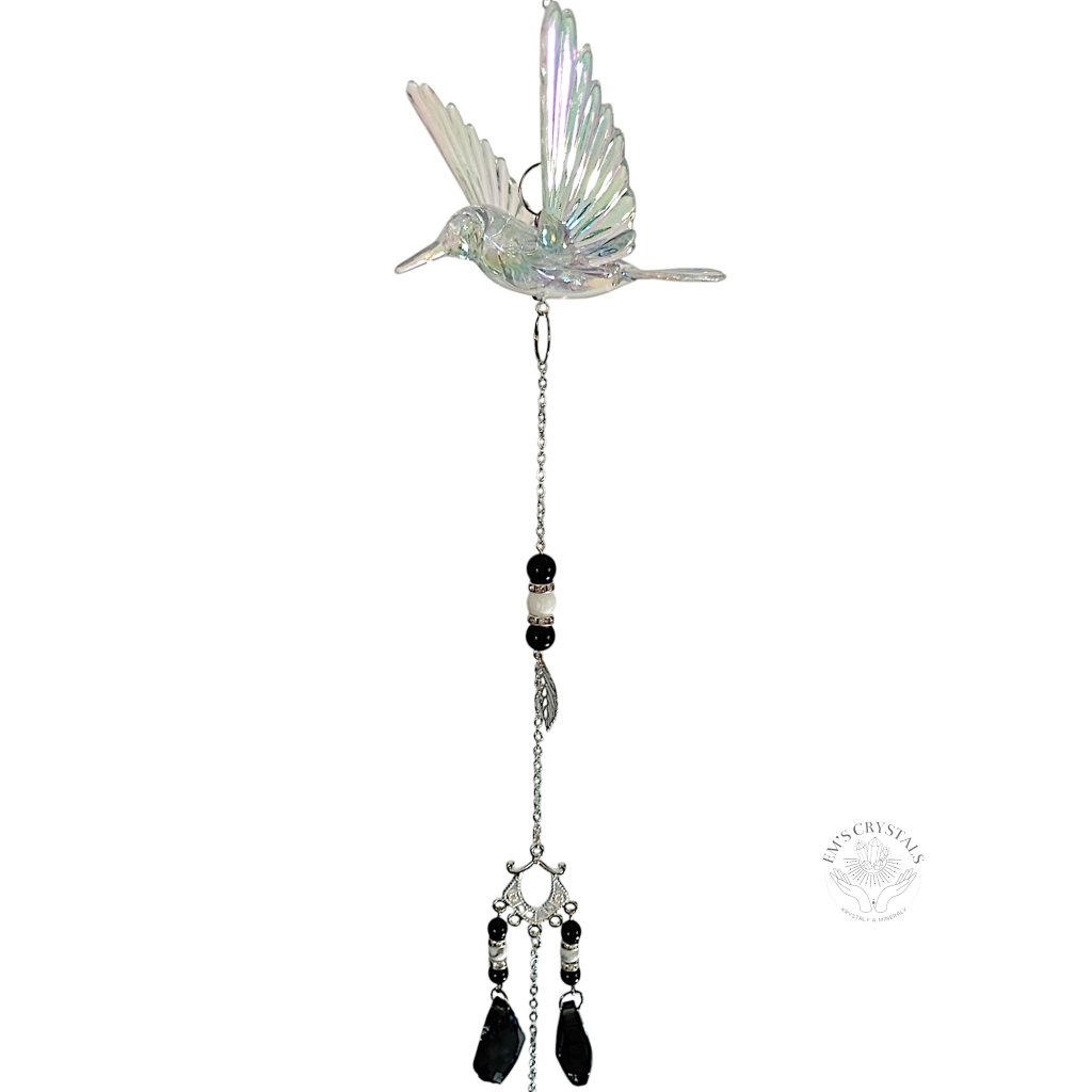 LAPAČ SLUNCE duhový ptáček, černý achát a magnezit