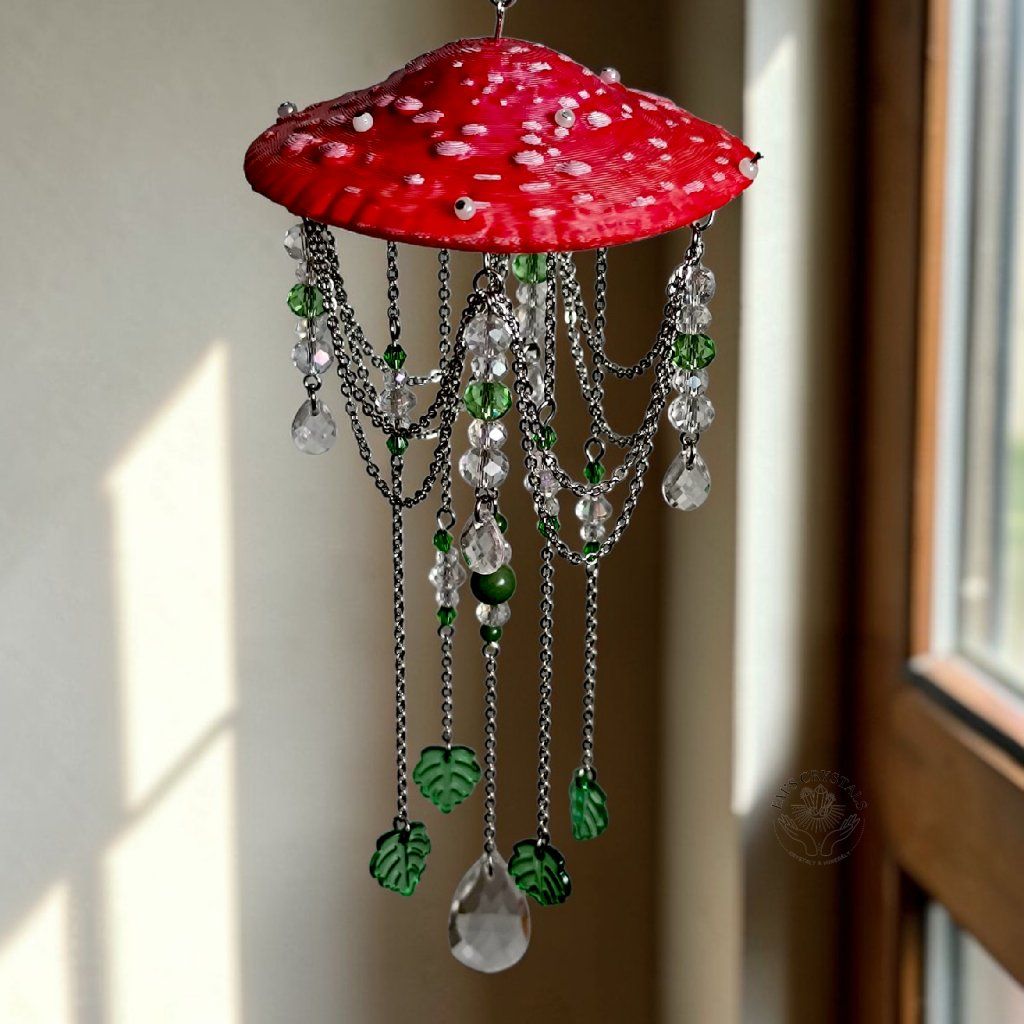 Vneste do svého domova kousek kouzelného lesa. Tento ručně vyráběný lapač slunce ve tvaru červené muchomůrky není jen krásnou dekorací, ale i zdrojem harmonie. Je doplněn o přírodní avanturín, kterému se přezdívá „kámen štěstí a příležitosti“.