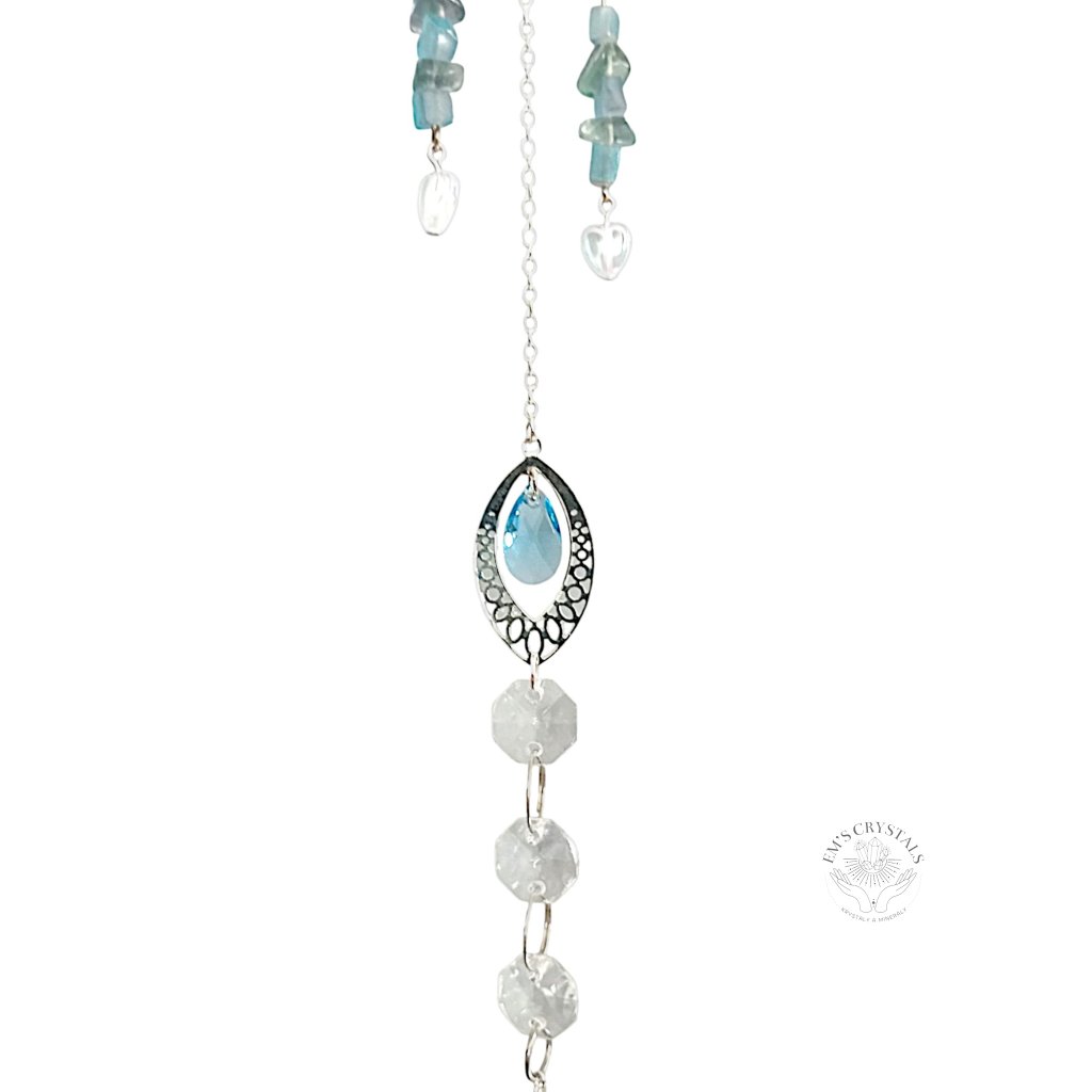 Lapač slunce s fluoritem a skleněnou feng shui koulí