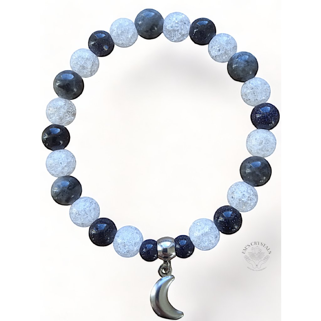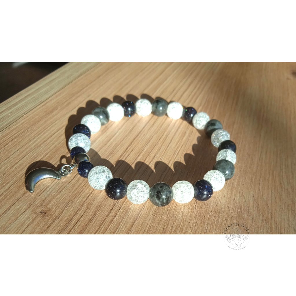 Noční obloha náramek chirurgická ocel, larvikit, křišťál , avanturín modrý