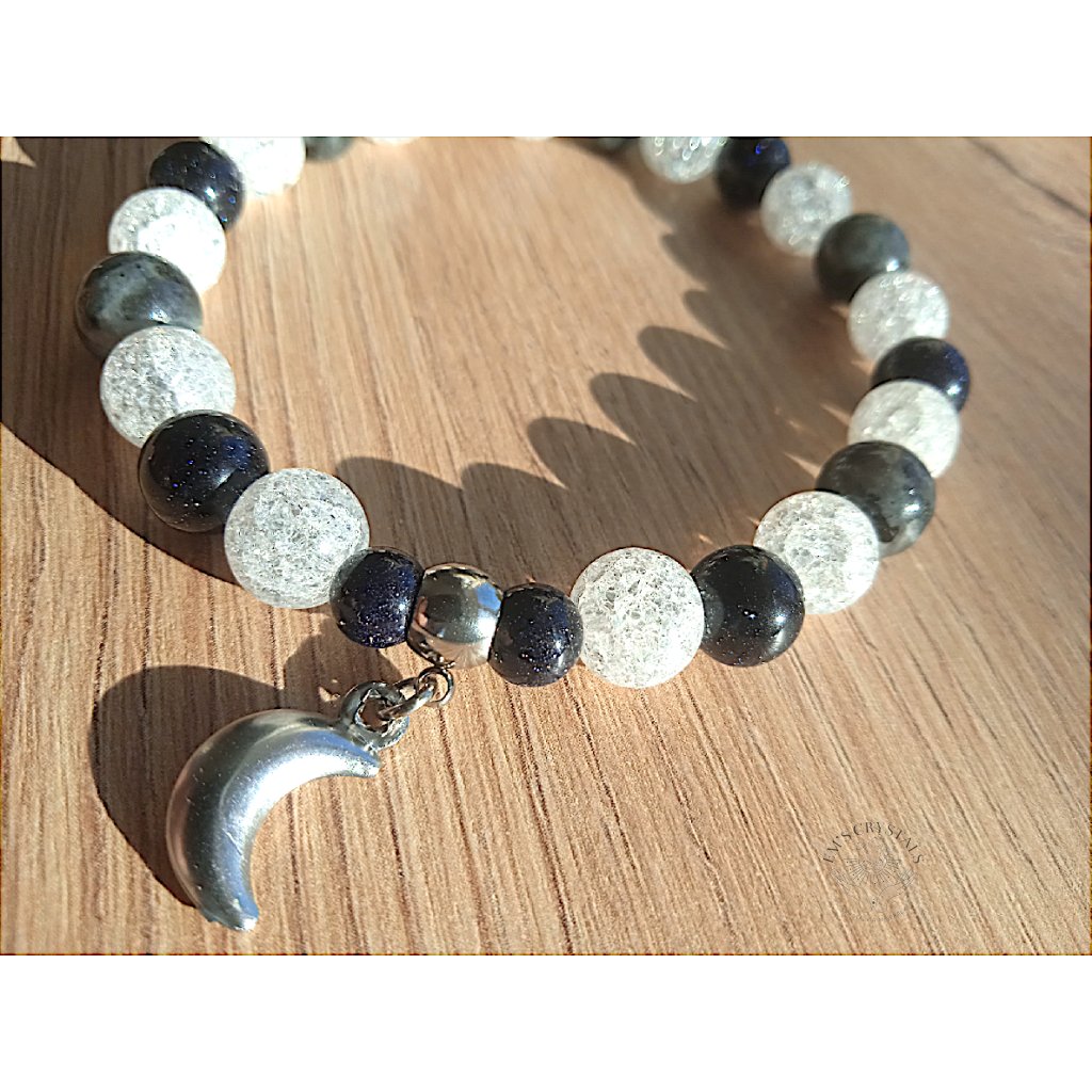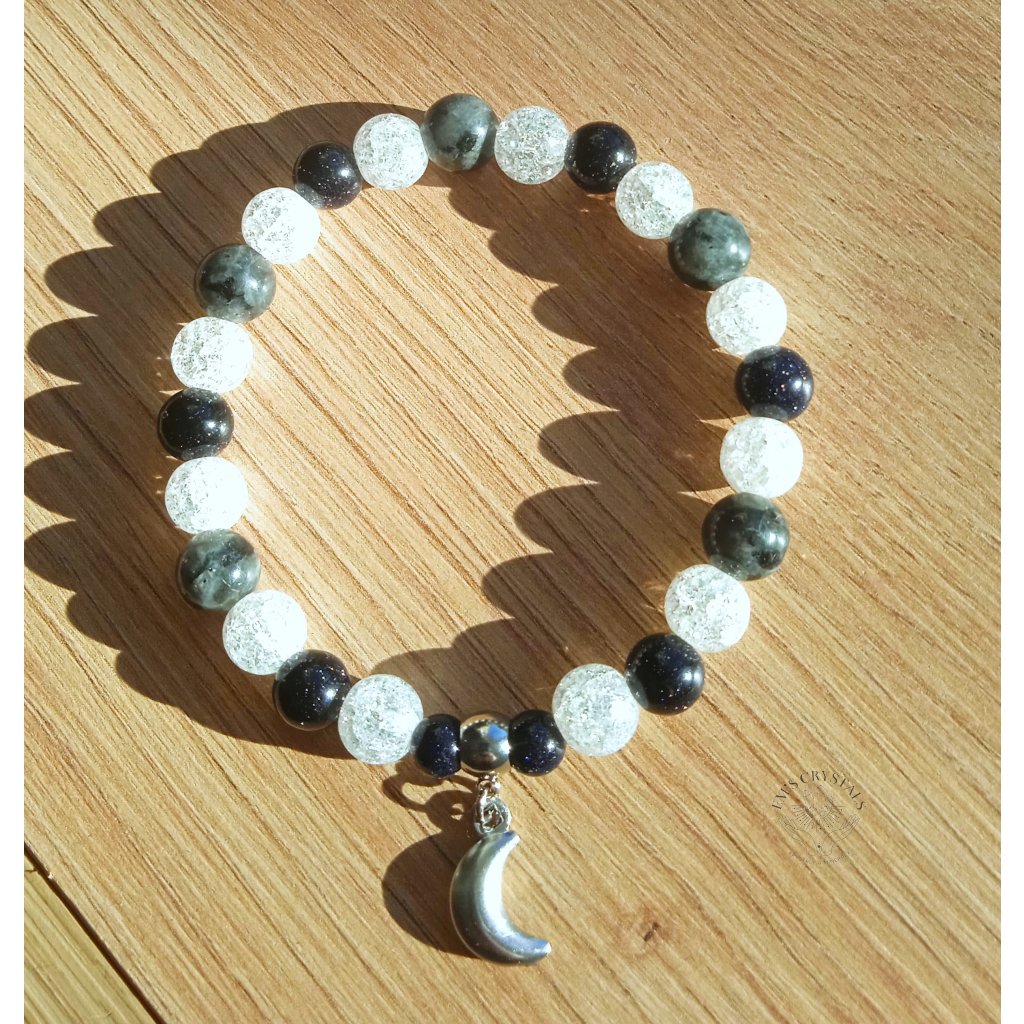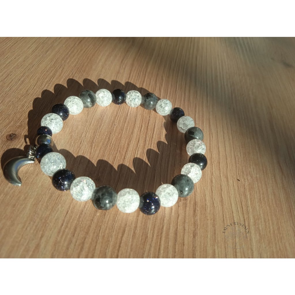 Náramek obsahuje minerály: larvikit, křišťál , avanturín modrý