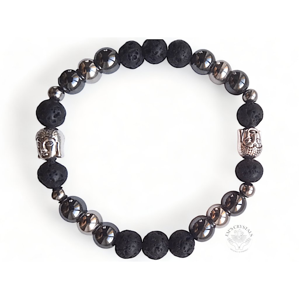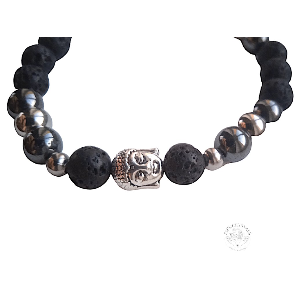 LÁVOVÝ KÁMEN A HEMATIT náramek Buddha