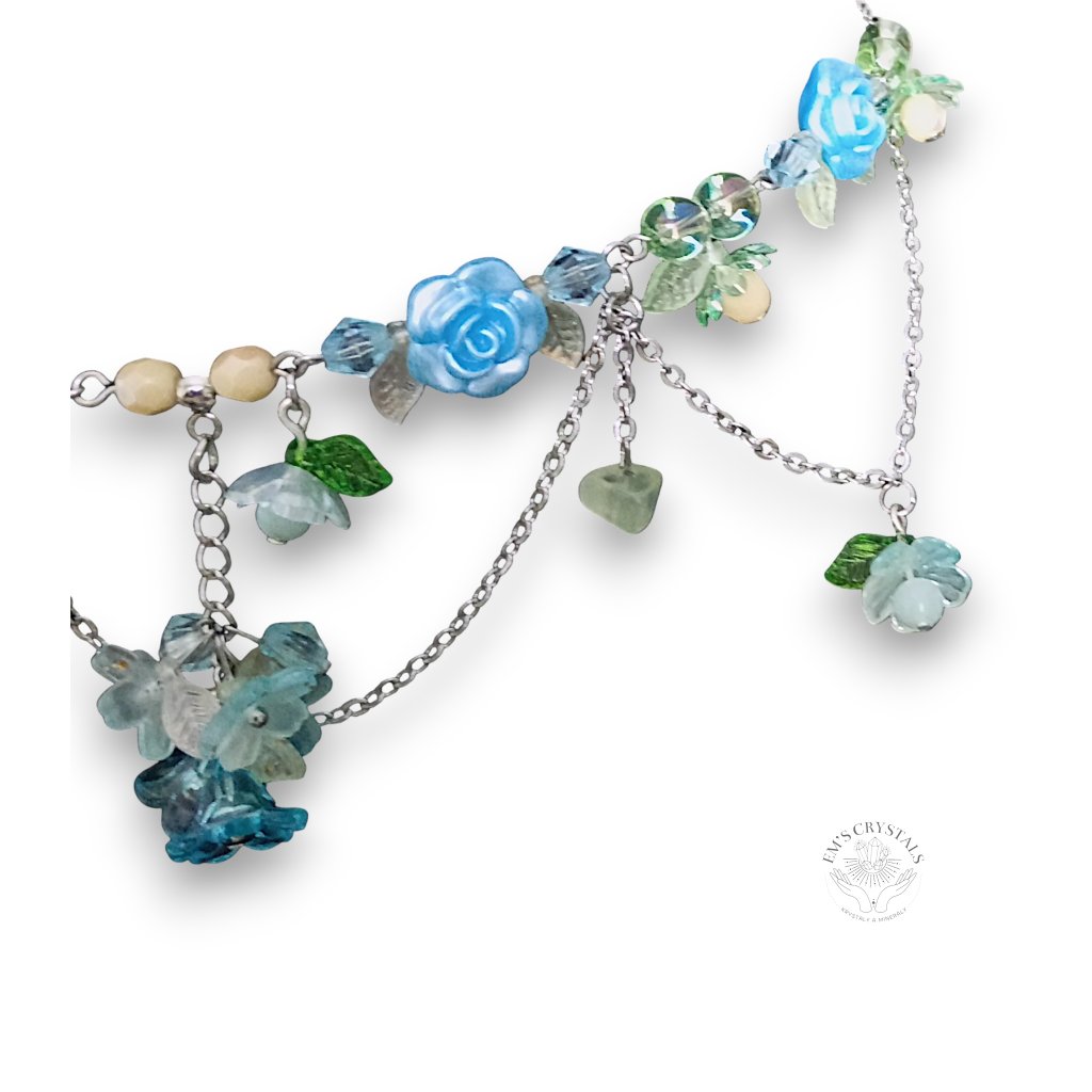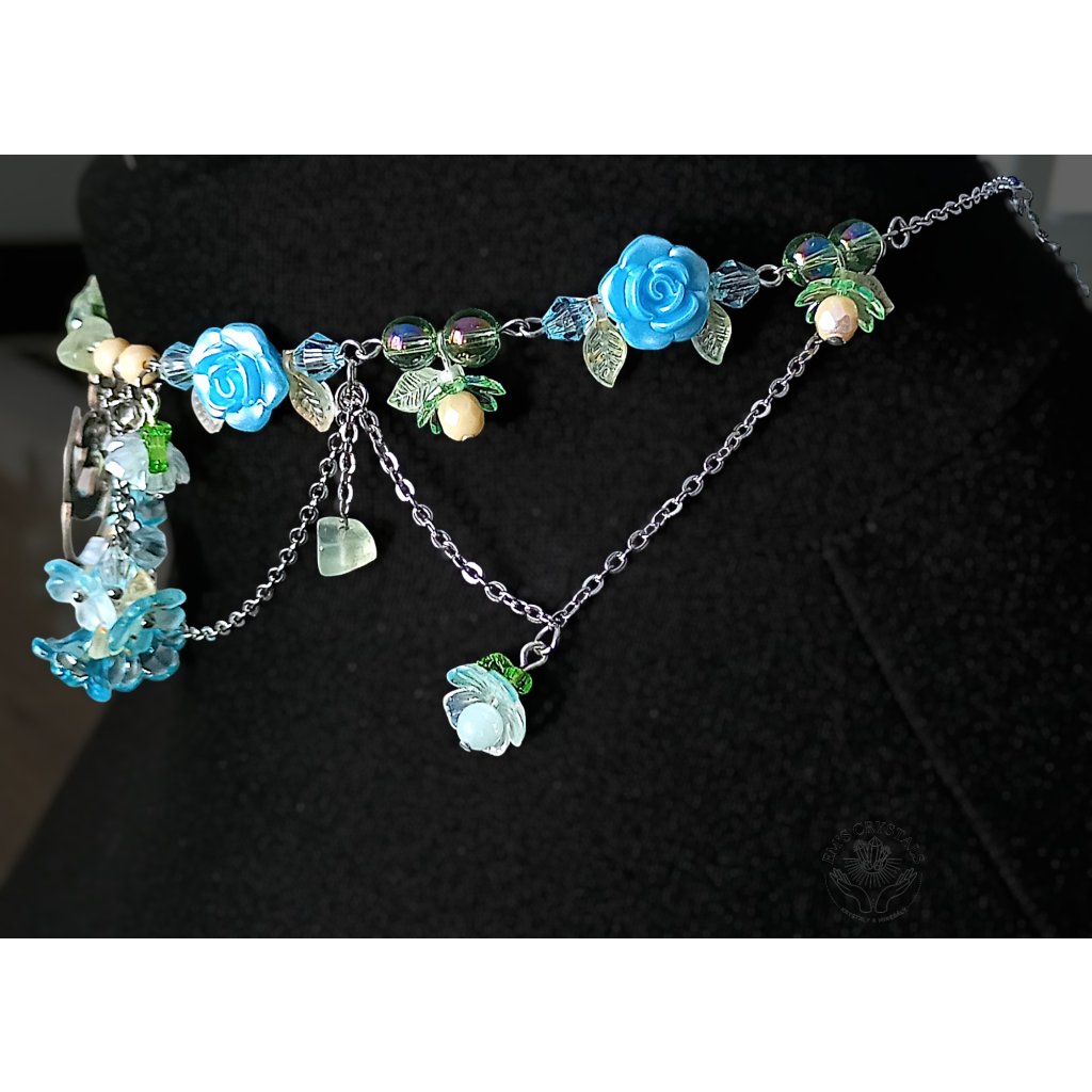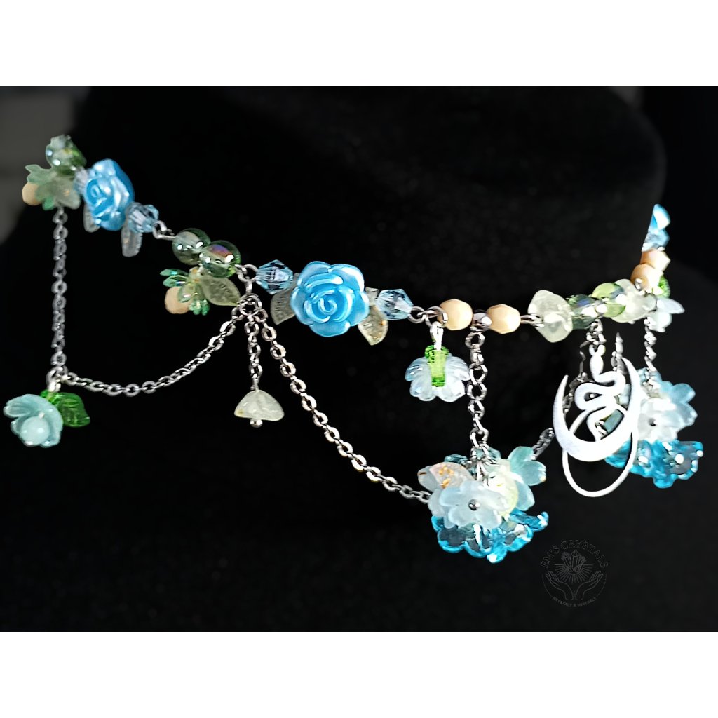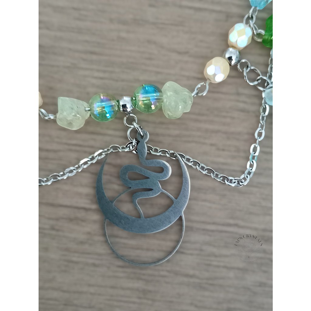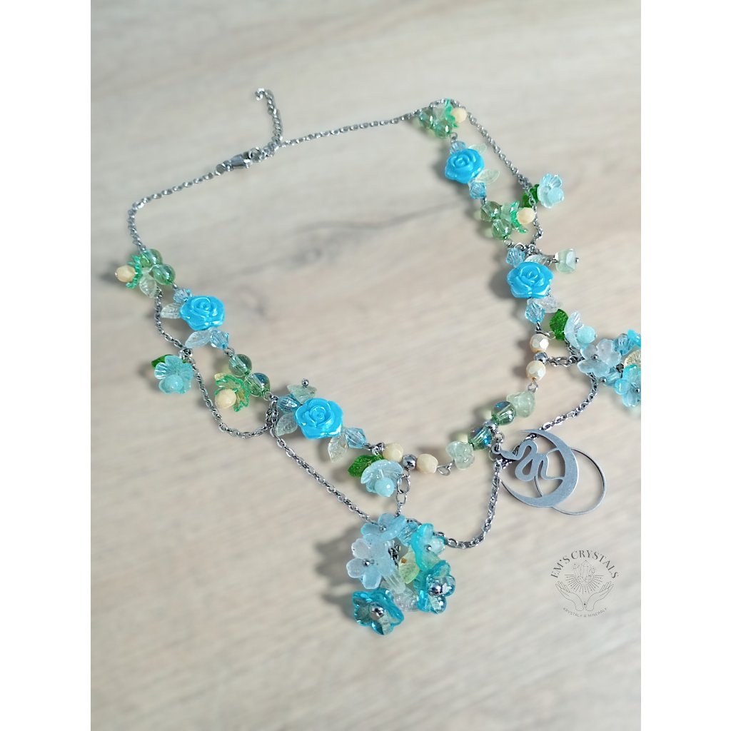 Z tyrkysových hlubin prastarých jezer se zrodil Whispering Serpent — náhrdelník, v němž se snoubí klid vody a síla proměny. Tyrkysové růžičky a jemné lístky objímají přívěsek hada z chirurgické oceli — symbol znovuzrození, moudrosti a ochrany. Minerál prehnit v sobě nese energii srdce a léčení, propojuje s intuicí a přírodou, zatímco tyrkysové tóny tiše šumí jako píseň skrytých pramenů. Tento náhrdelník je určen duším, které se nebojí proměny a kráčí cestou klidu i síly.