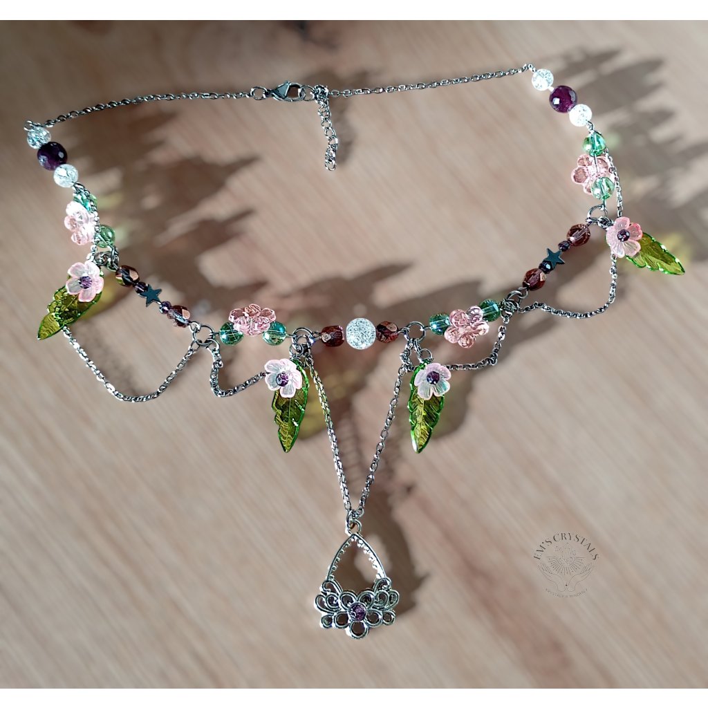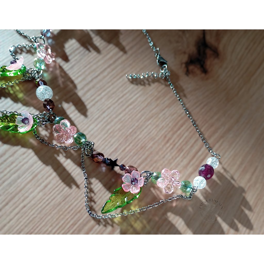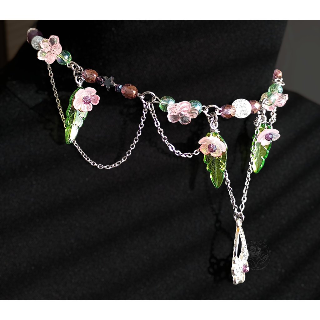 Když se první paprsky ranního slunce dotknou kapek rosy, svět se probouzí do jemné symfonie světla a klidu — stejně jako Whispers of Dawn. Tento náhrdelník spojuje něhu růžových květů s uklidňující silou jadeitu, jenž otevírá srdce novým začátkům. Křišťál vnáší čistotu a jasnost, zatímco hematitové hvězdy chrání energii a udržují duši pevně spjatou se zemí. Dlouhé zelené listy a něžný květinový přívěsek tvoří poetický obraz probouzející se přírody — okamžik, kdy noc ustupuje světlu a svět znovu dýchá.