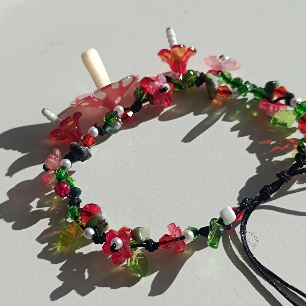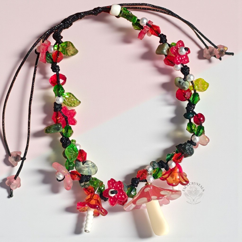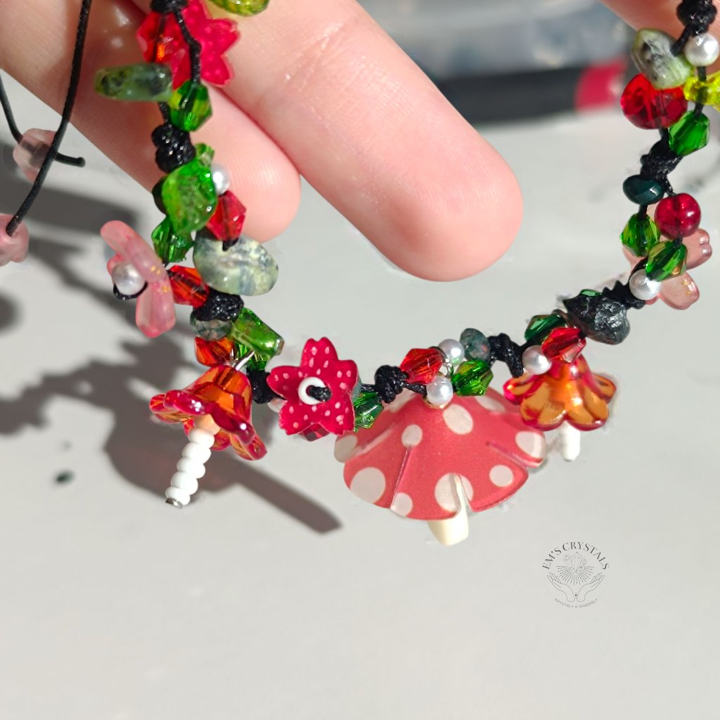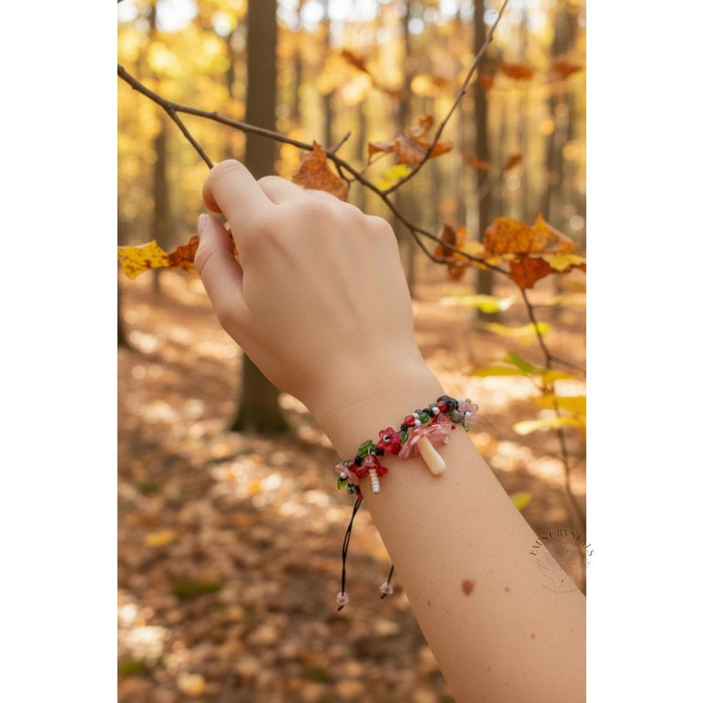 Vstupte do světa lesních kouzel s náramkem Whispering Toadstool, který propojuje jemnost přírody s nádechem tajemna. Na tenkém vlákně se třpytí drobná mochomůrka – symbol lesních duchů, proměny a ochrany – obklopená kameny, které nesou sílu země.