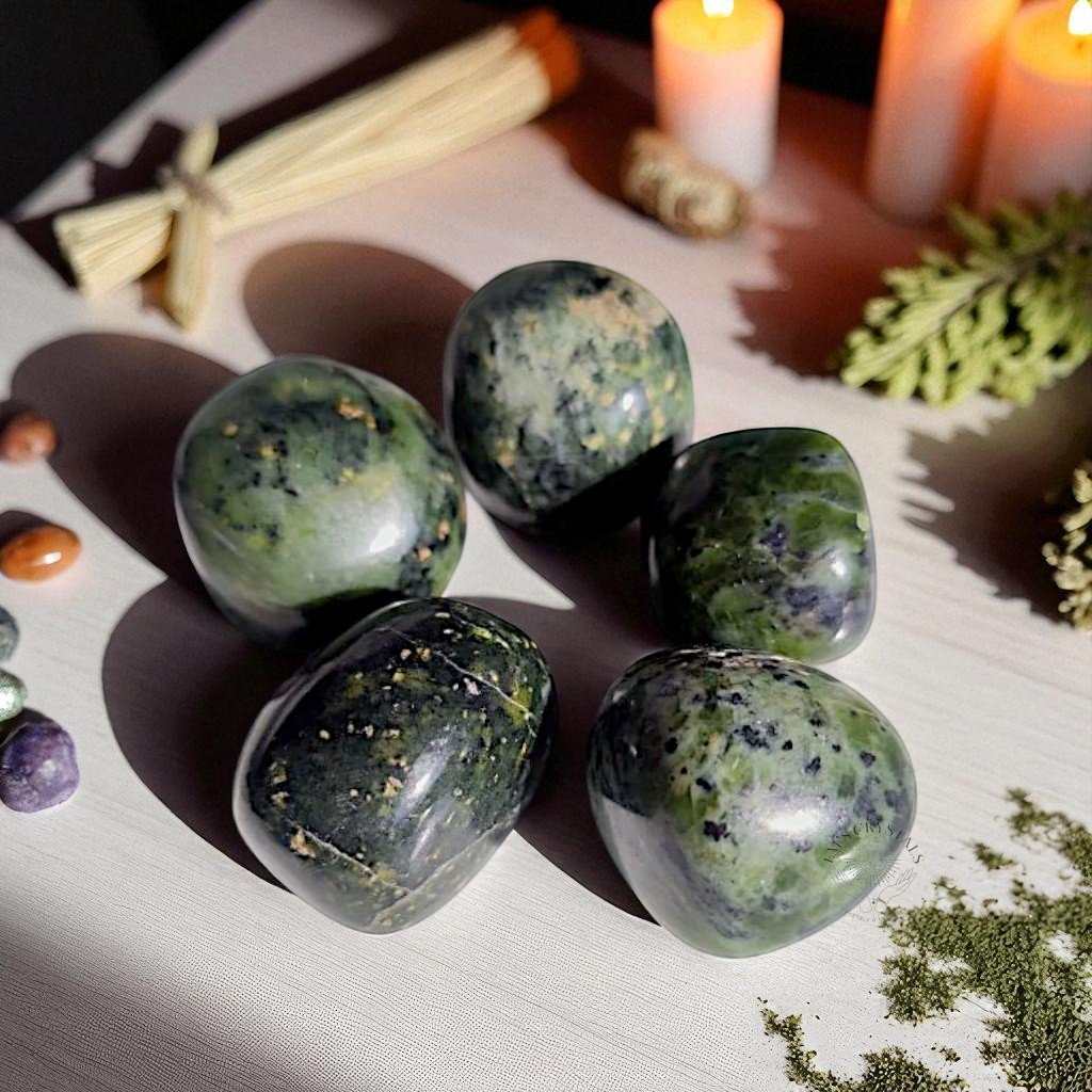 Nefrit pracuje se srdcem, třetím okem a korunní čakrou. Jeho energie harmonizuje čakry a přináší mír a klid. Umožňuje nám otevřít naše srdce vyššímu duchovnímu vědomí a spojit se s vesmírem. Má neuvěřitelnou uzemňovací schopnost a umožňuje nám najít naši vnitřní sílu. Jeho vibrace posilují naši osobní sílu a v případě potřeby nám pomáhají najít odvahu a soucit. Pro pocit duchovní hodnoty nefritu se podívejte do tváře velkého vyřezávaného Buddhy. V té tváři je hluboký mír, rovnováha a síla. Věří se, že nefrit podporuje tyto vlastnosti u svých nositelů a nabízí fyzickou a emocionální pohodu, zejména během nepříjemných nebo obtížných situací.