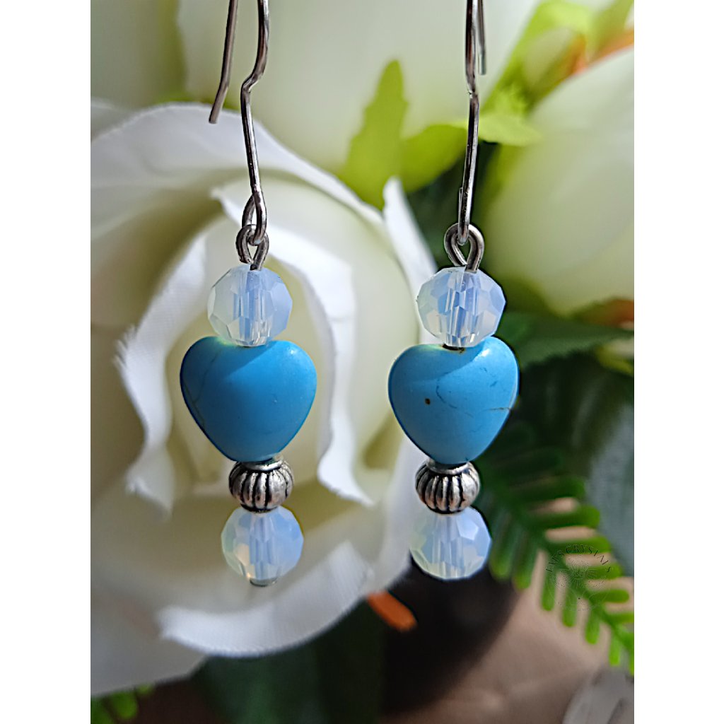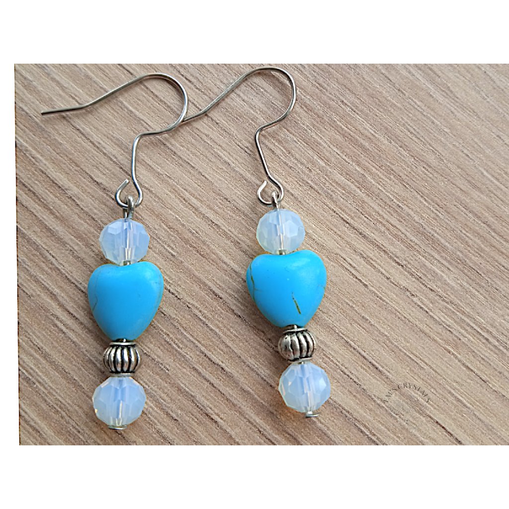 OPALIT S TYRKENITEM srdíčko, náušnice chirurgická ocel