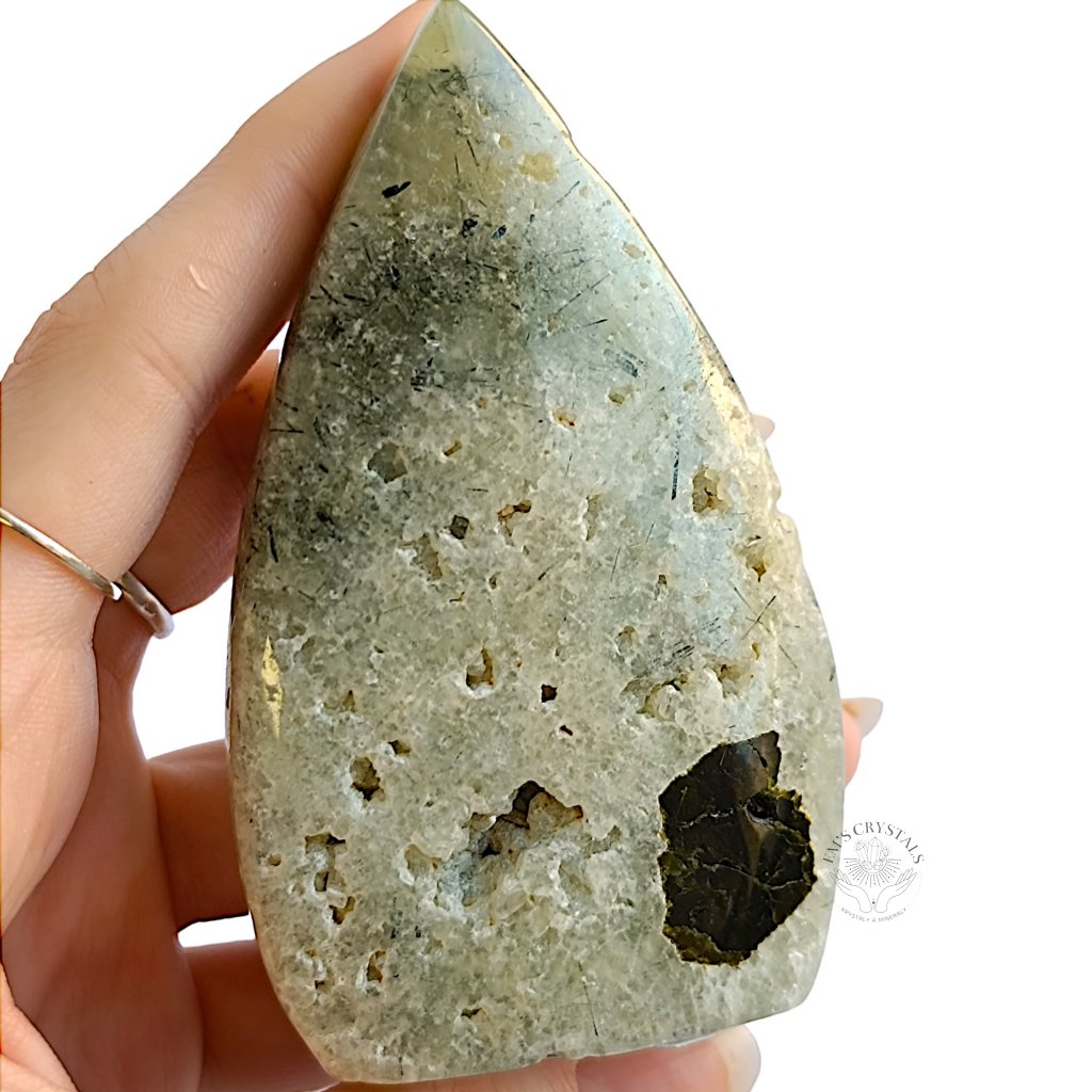 Prehnit je kámen spojený s láskou, mírem a harmonií. Jeho magické vlastnosti zahrnují podporu emocionální rovnováhy a otevření srdce. Tento kámen je často používán k uklidnění myslí a snižování stresu. Prehnit má tendenci posilovat vztahy a podporovat porozumění v mezilidských vztazích. Jeho energie je spojena s léčením emocionálních ran a podporou sebelásky. Prehnit je také spojován s intuicí a duchovním růstem, což ho činí účinným nástrojem pro meditaci a duchovní práci.