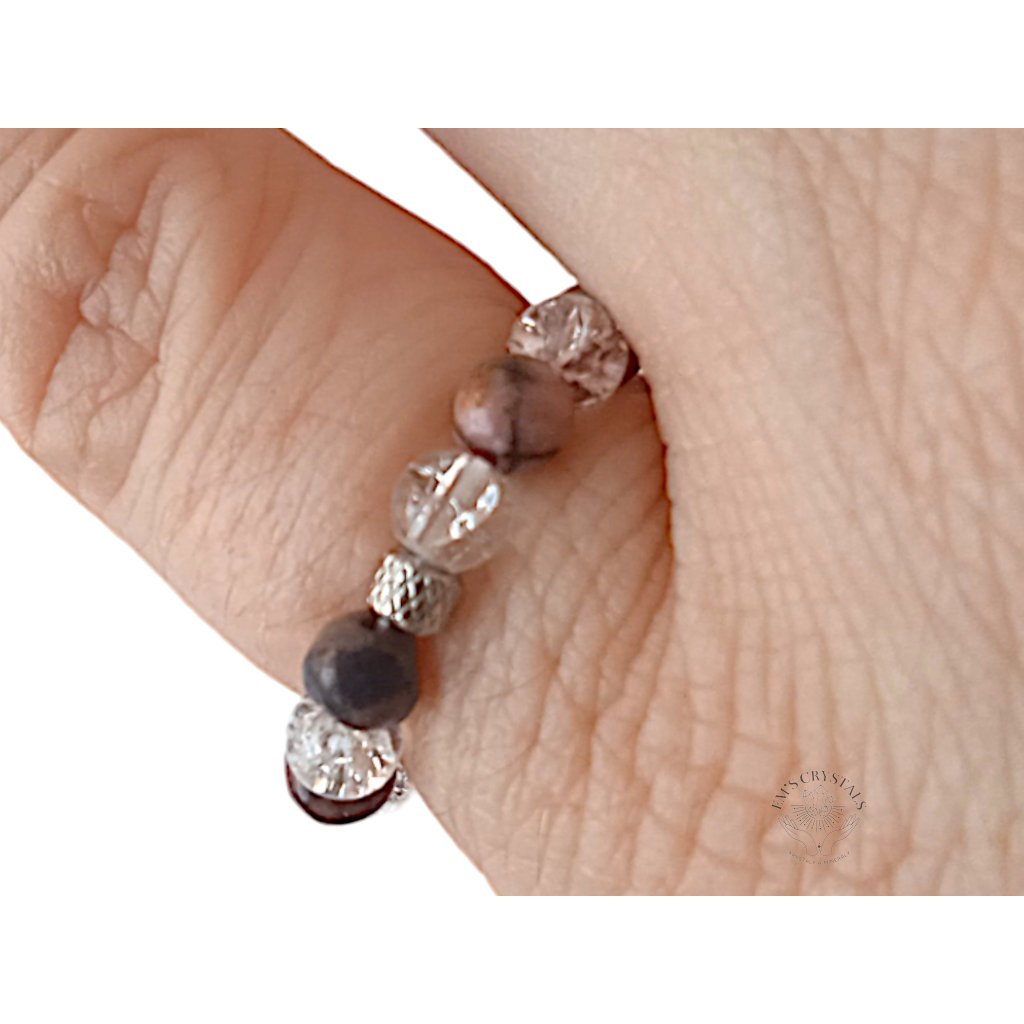 Minerální korálky o velikosti cca 4mm jsou navlečeny na elastické gumičce s komponentem z chirurgické oceli
