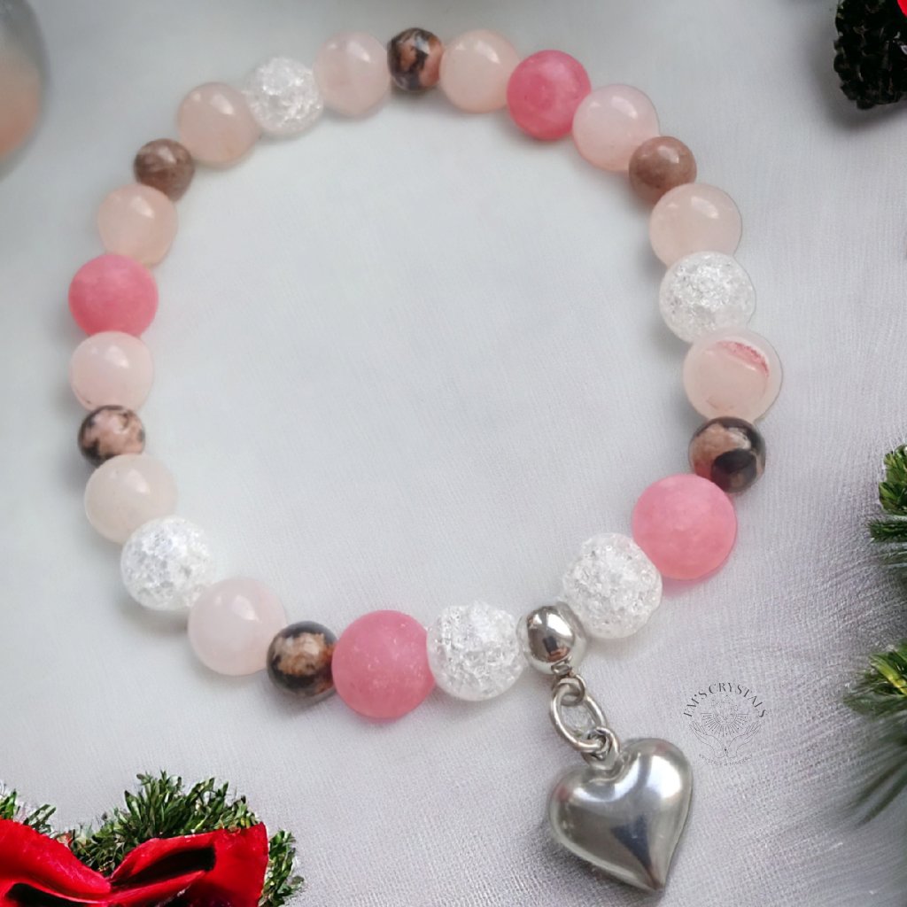 LÁSKA náramek chirurgická ocel, růženín, rodonit, achát barvený růžový, křišťál