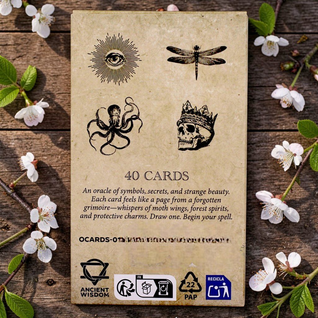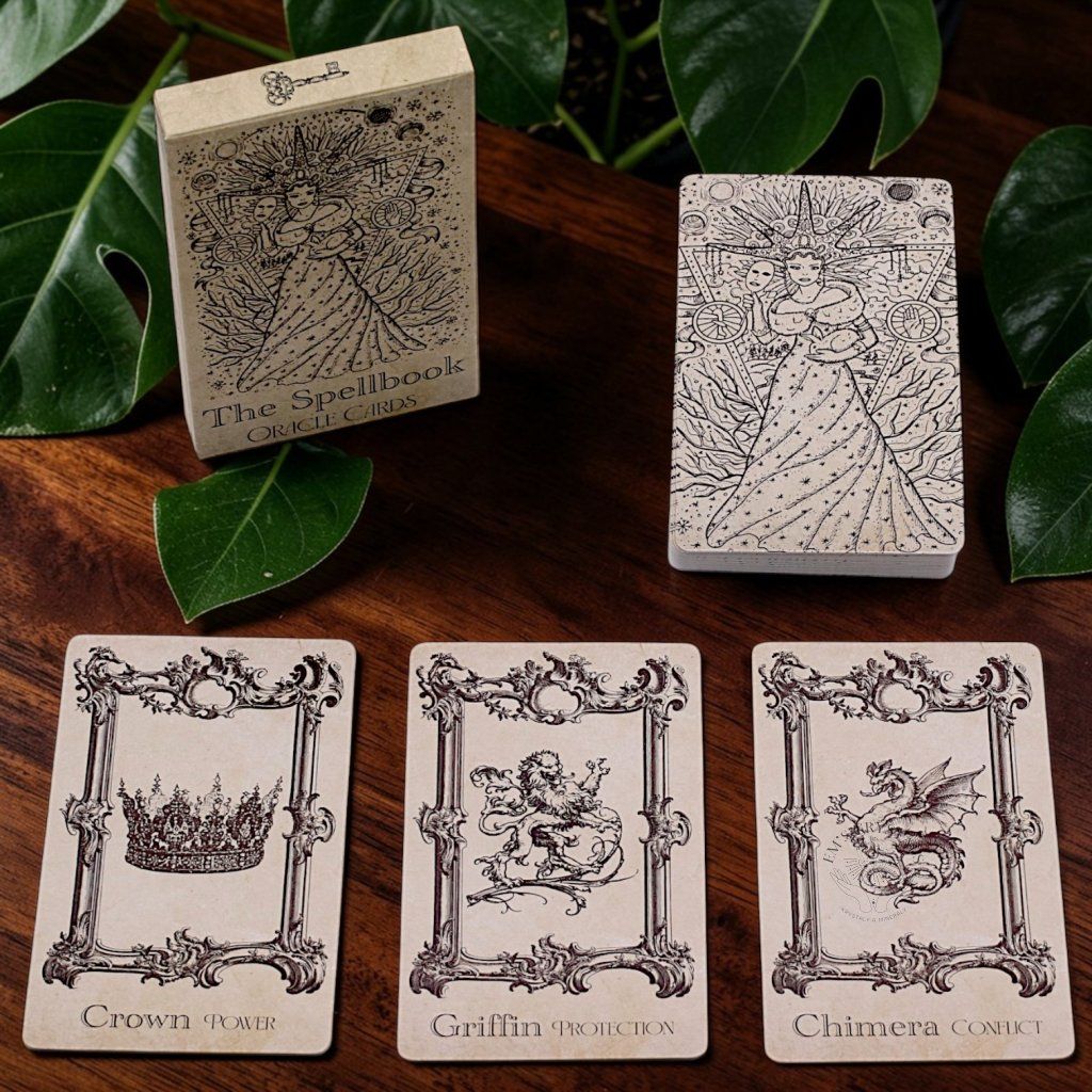 Vstupte do světa prastaré moudrosti. Tento balíček věšteckých karet je navržen tak, aby připomínal stránky staletí staré knihy kouzel. Každá karta je uměleckým dílem ve stylu vintage leptu, které kombinuje okultní symboliku s jemnými přírodními motivy. Design připomínající starožitný pergamen ve vás probudí intuici a pomůže vám najít odpovědi skryté hluboko v podvědomí. Ideální průvodce pro každodenní rituály a hlubokou duchovní práci. Otevřete svou vlastní Knihu kouzel skrze tento nádherně ilustrovaný balíček karet. Jednoduché, ale hluboké symboly čerpající z přírody a okultismu nabízejí jasné vedení a reflexi pro vaše otázky. Díky svému starožitnému vzhledu a promyšleným obrazům se karty stanou vaším oblíbeným nástrojem pro seberozvoj. Nechte se vést svou intuicí a objevte vzkazy, které pro vás má vesmír připravené.