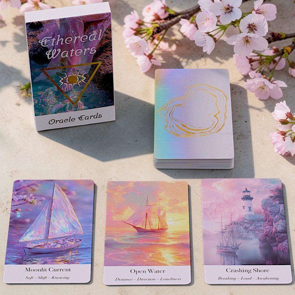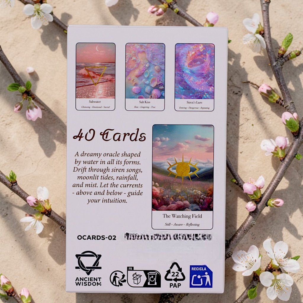 Ponořte se do hlubin své duše s balíčkem, který je stejně proměnlivý a hluboký jako oceán. Ethereal Waters vás přenesou do světa sirén, měsíčního svitu a nekonečného klidu. Jemné pastelové ilustrace se zlatými akcenty vyzařují konejšivou energii, která vás pohladí po duši při každém výkladu. Tento balíček je vaším bezpečným přístavem pro chvíle, kdy potřebujete emocionální vhled, klidné zamyšlení nebo vedení na cestě za vnitřním mírem. Pomůže vám orientovat se v proudu vašich pocitů a spojit se s vaším vnitřním hlasem. Díky svému snovému vizuálu a duhovým odleskům promění každé čtení karet v estetický zážitek. Elegantní krabička z něj dělá nádherný dárek pro každého, kdo miluje moře, sny a duchovní růst.