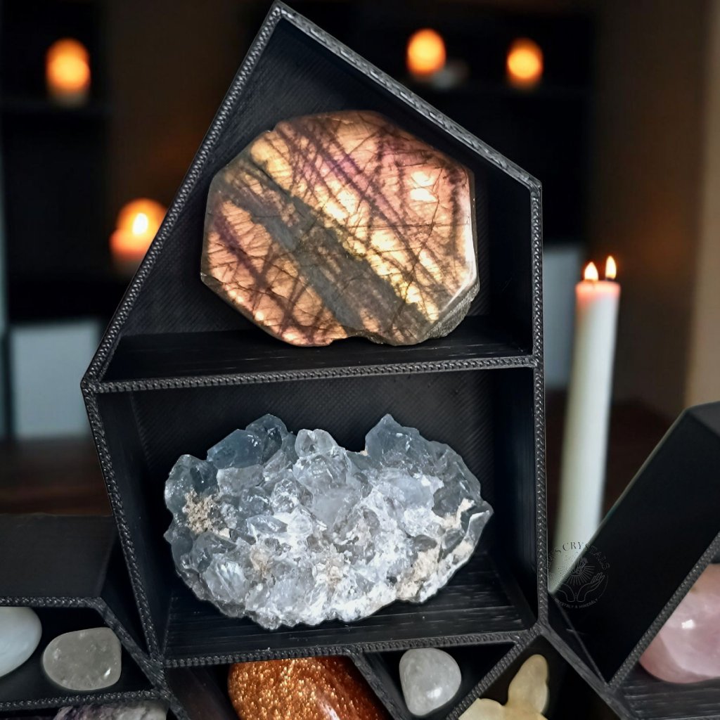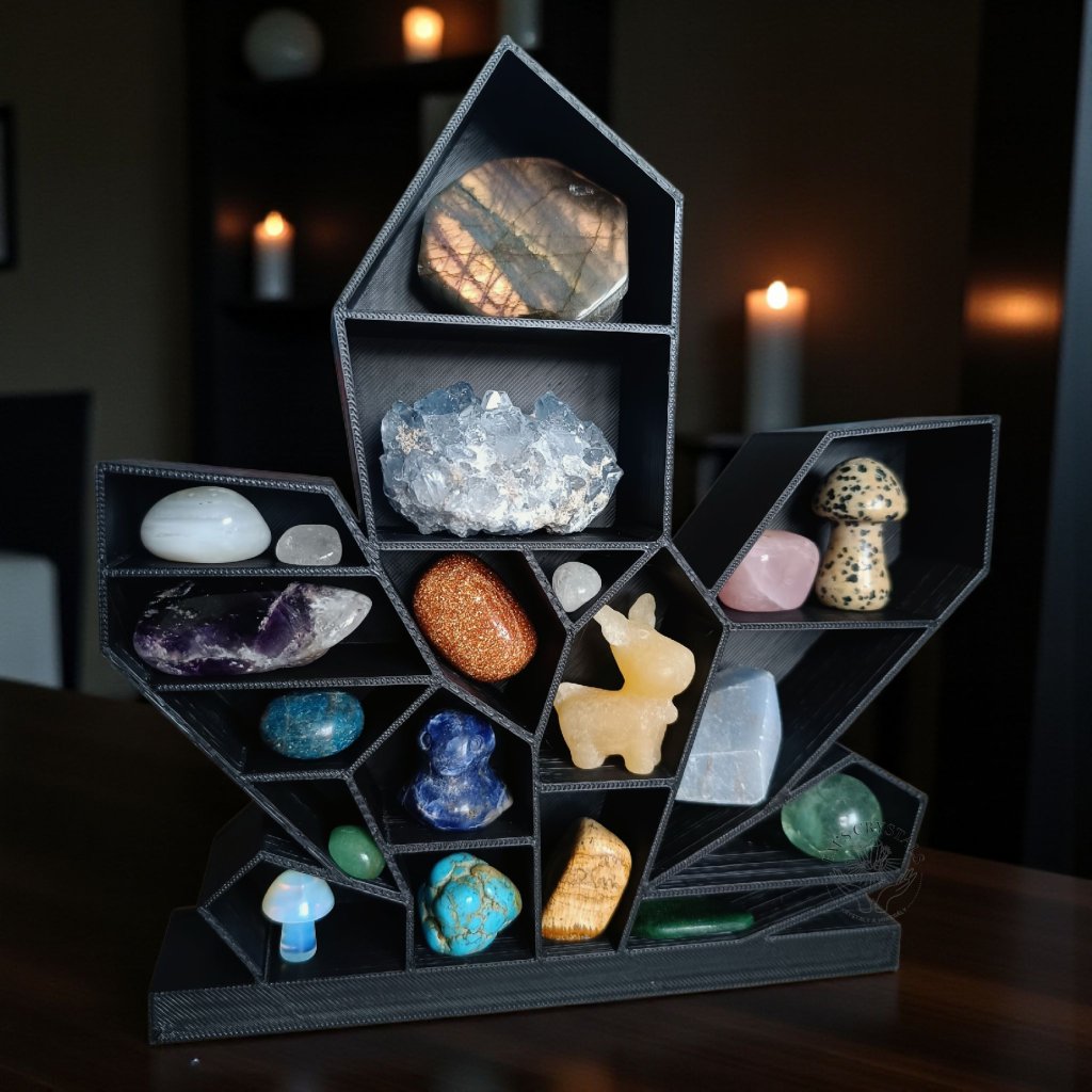Nechte své krystaly, minerály nebo drobné dekorace vyniknout na této originální poličce inspirované přírodními tvary krystalů.